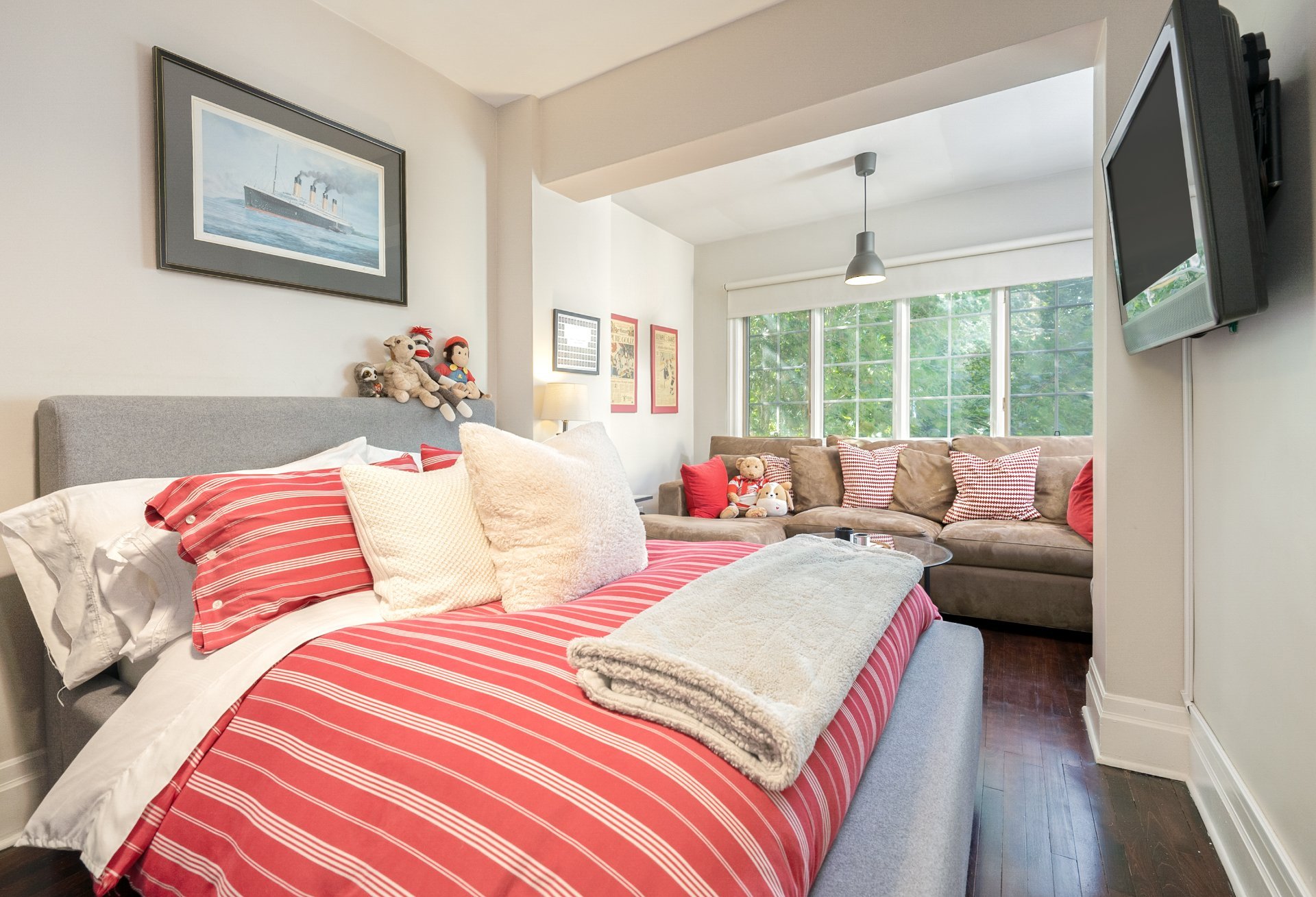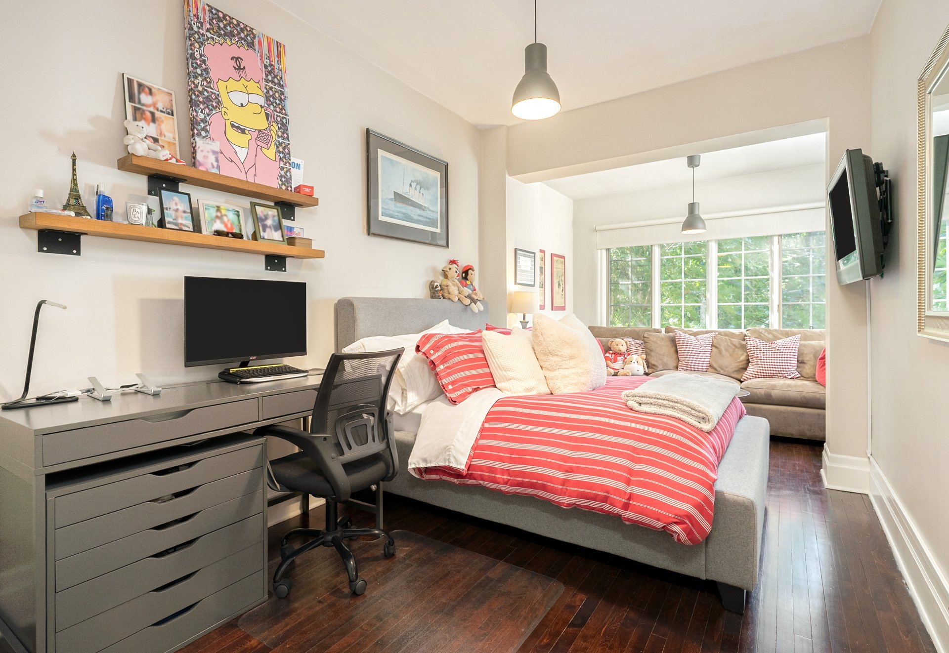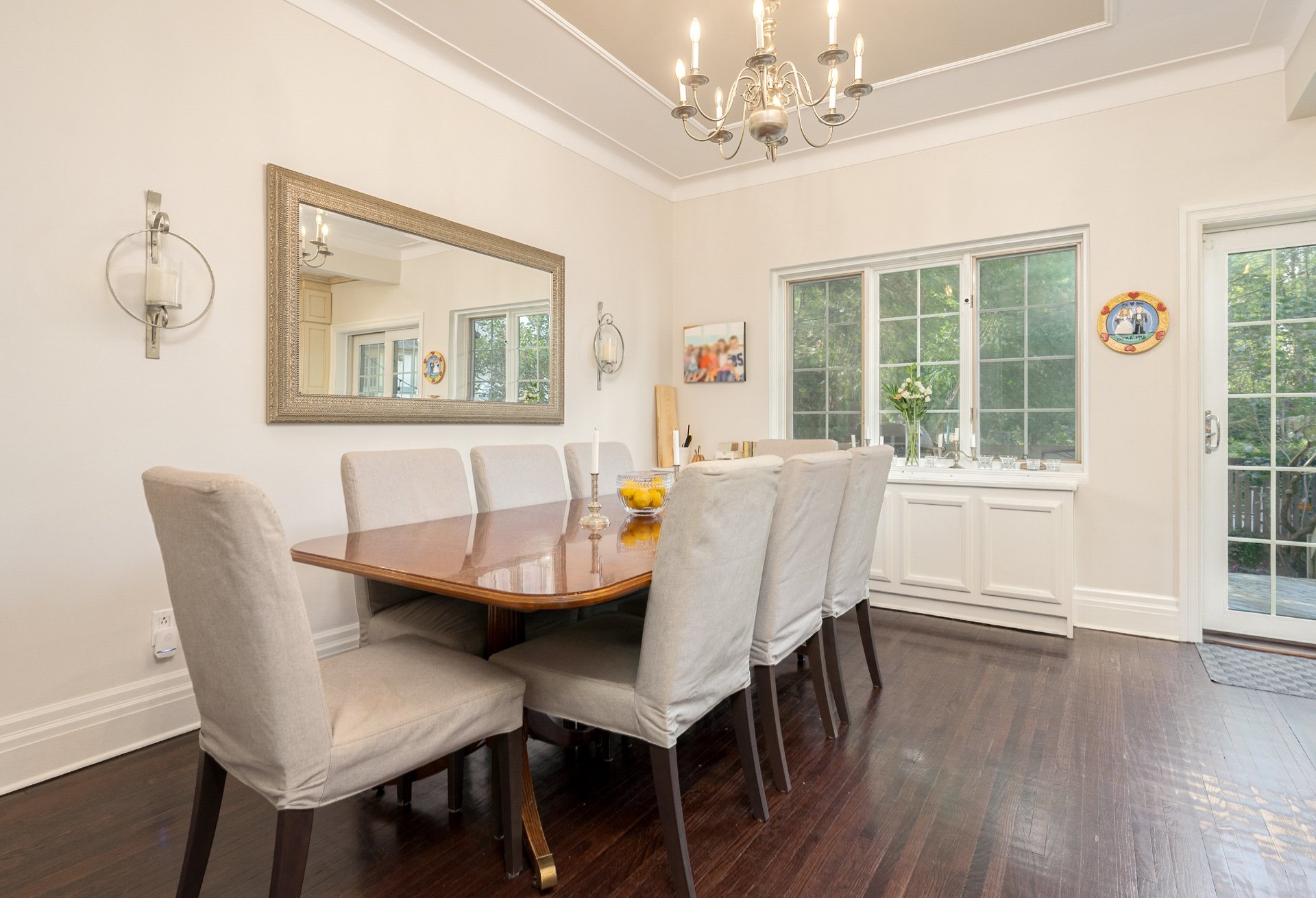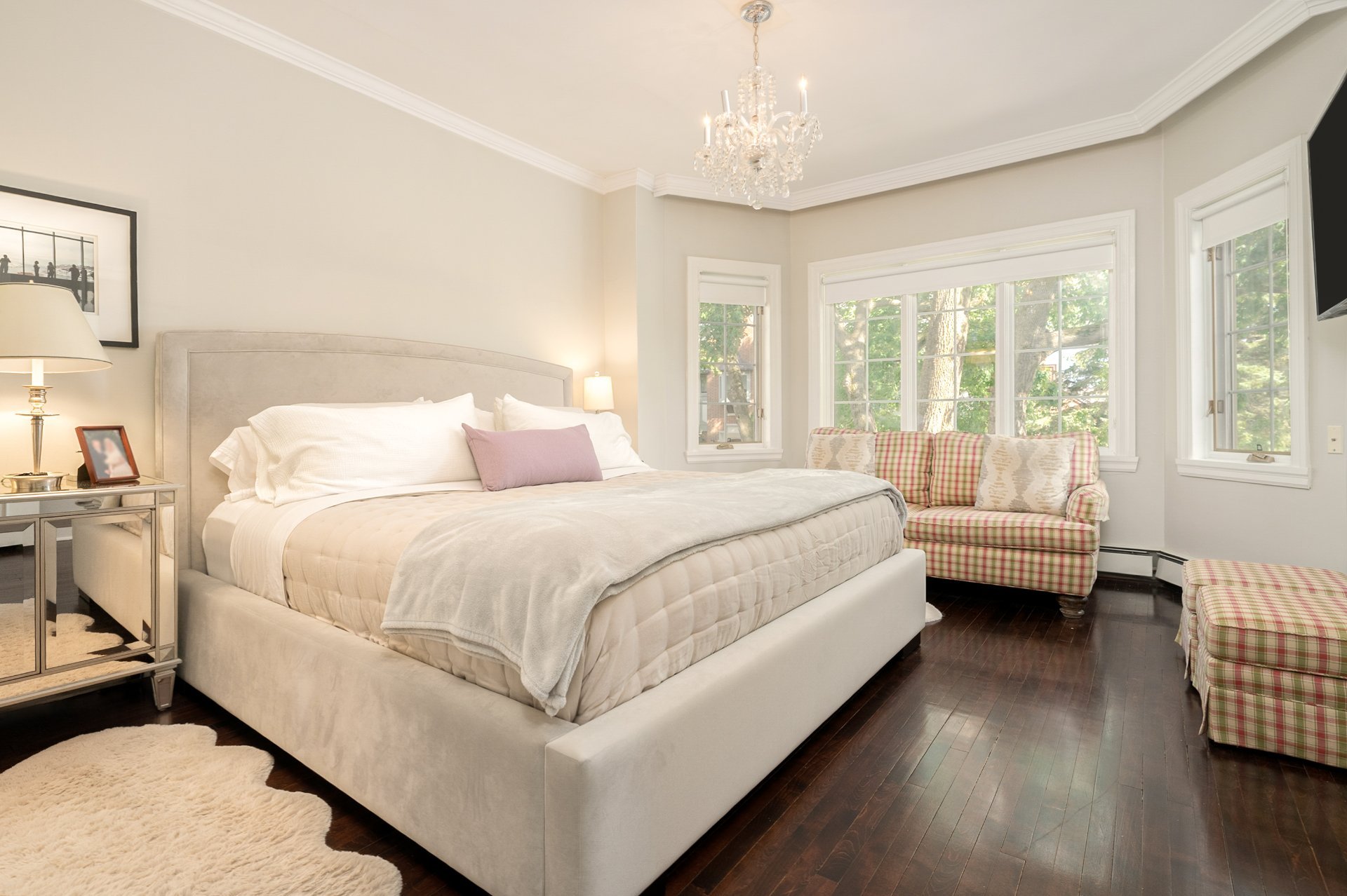 by arched details and a large bay window is ideal for both