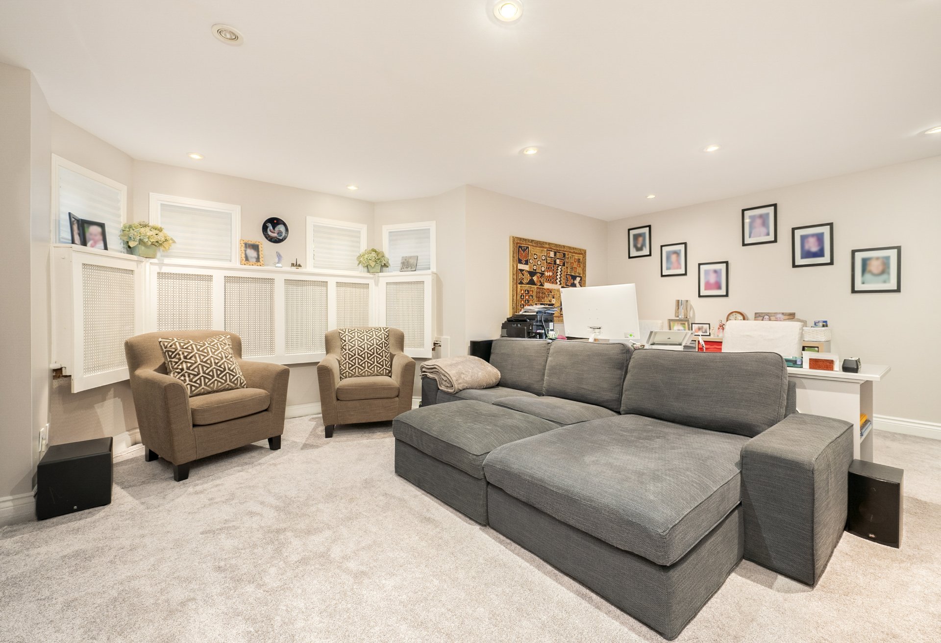 The fully finished basement includes a spacious family room